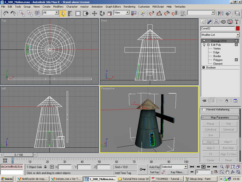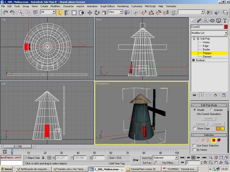 Primero debo aclarar que el programa que uso es Autodesk 3ds Max8 (2008), y quizá haya algo diferente en los comandos, tal como observe en la selección de polígonos, tema que tengo resuelto.
