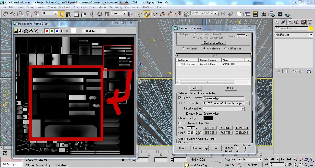 Basicamente, el problema es que al abrir la imagen tga resultante, esta se muestra totalmente transparente, cuando debería estar dibujado el mapeado del objeto.