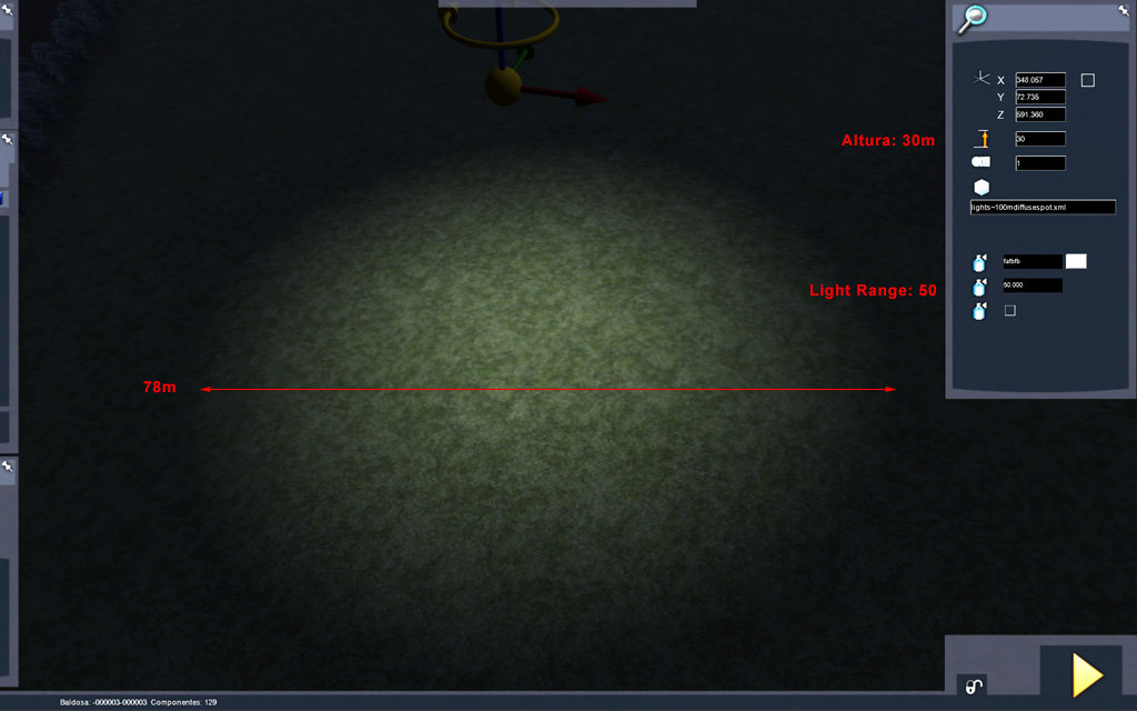 Vamos a conocer mejor los parámetros de ajuste de Altura (terreno) y Light range (intensidad) de las luces Spot: