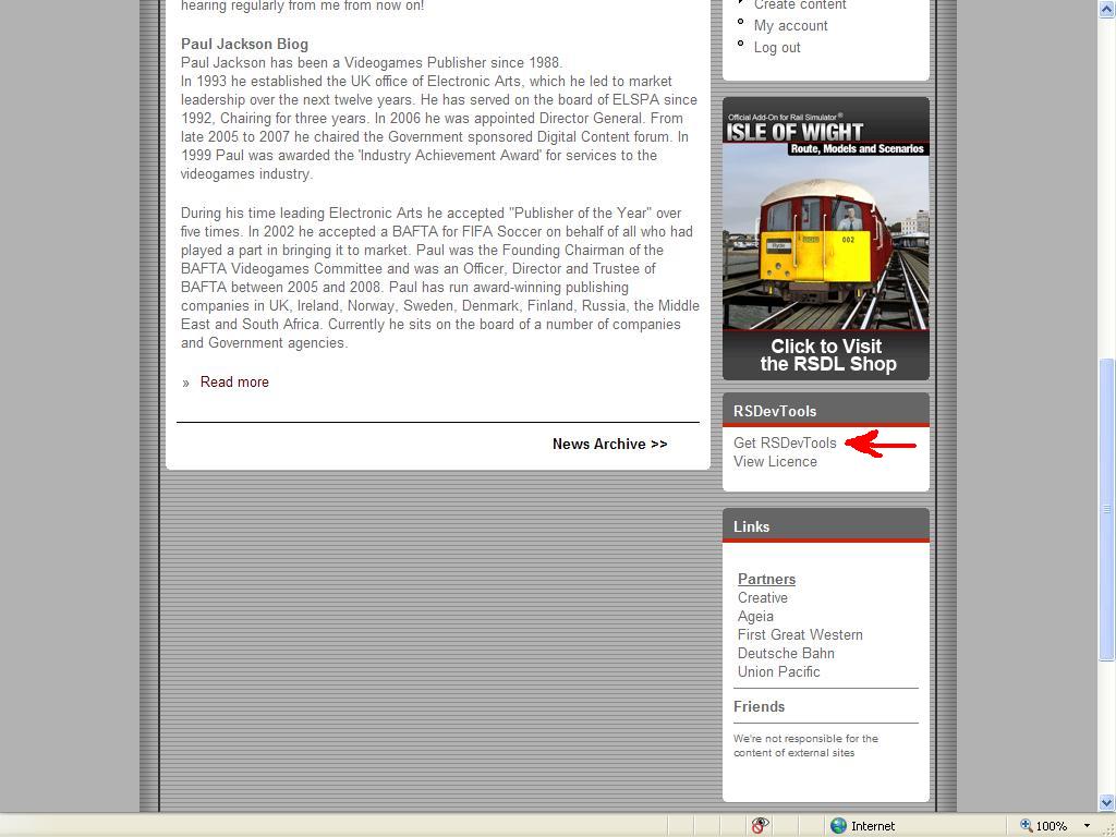 Como ya se ha dicho, está en un cuadro, a la derecha de la principal de railsimulator.com, bajo el título RSDevTools, donde pone Installer (39Mb) Aug 08.