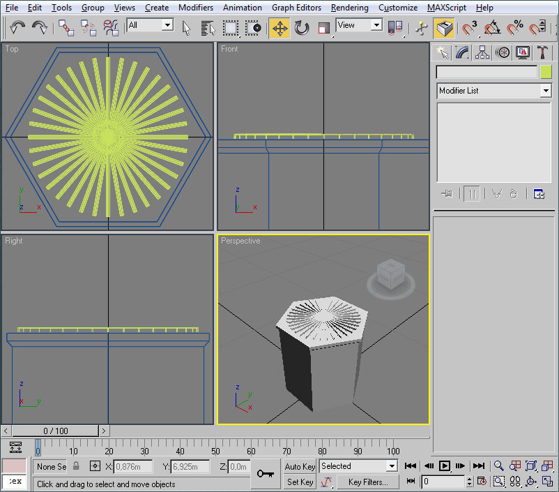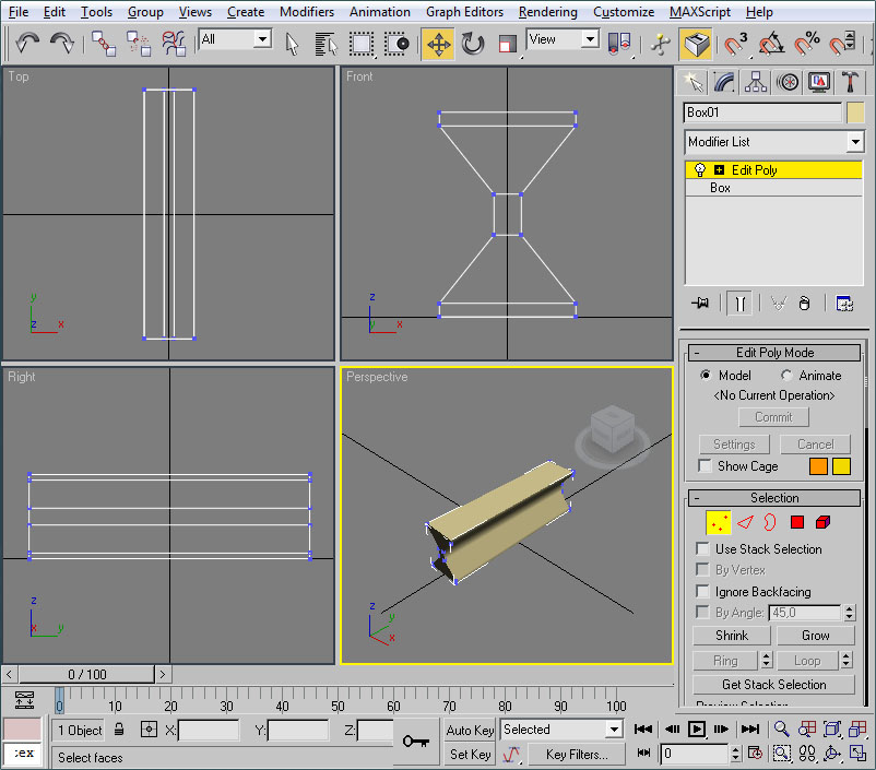 - Una vez abierto el editor UVW pincharemos en un viewport (el de perspectiva será ideal) sobre un lateral del muro.