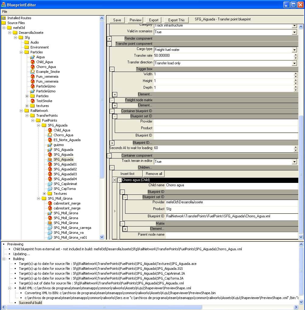 • Provider : "RailNetwork\TransferPoints\FuelPoints\SFG_Aiguada\Chorro_Agua.xml", cuando deberías tener "Sfg\RailNetwork\TransferPoints\FuelPoints\SFG_Aiguada\Chorro_Agua.xml"