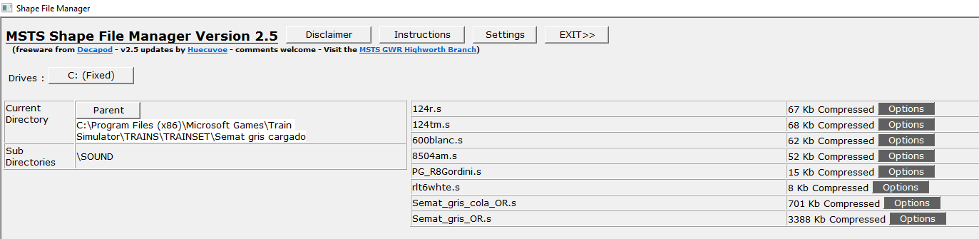 Luego, teneis que pulsar OPTIONS en el archivo .s del que se quiera crear un .sd-