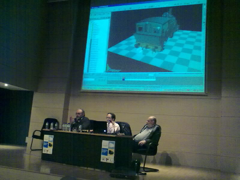 Las jornadas están siendo, en mi opinión, muy productivas. La mayoría de los debates, ya que el planteamiento es ese más que el de ponencias cerradas, se está centrando en diferentes aspectos de la implementación en Rail Simulator, que tras los acontecimientos del último año, parece ser la opción por la que se decantan muchos de los asistentes. En este sentido, se ha hablado de rutas de Rail Simulator (por ejemplo la de Steam on the Sierra de Jordihp), la creación de lofts por Pere Comas. Ello sin olvidar la mención de MSTS (ruta de Despeñaperros de Adrian) o la situación de TRS. El tema no se limita a simuladores comerciales y así me ha resultado muy interesante ha sido la comunicación de BCN termino sobre el simulador del GMB que está desarrollando.
