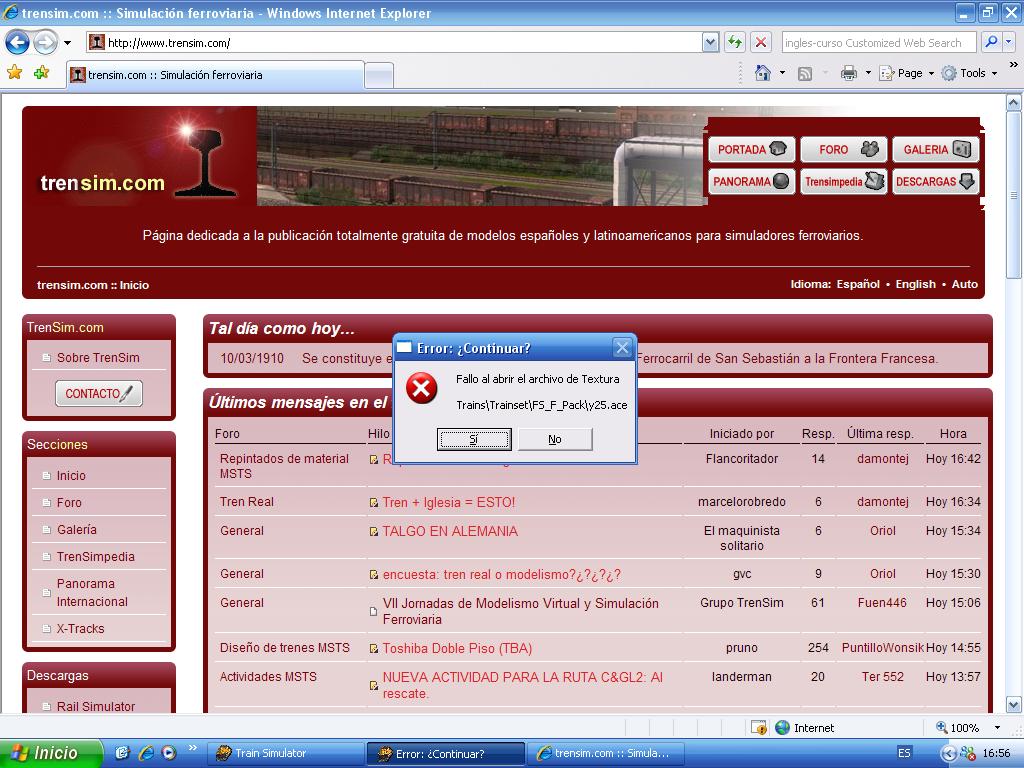 Hola, no puedo realizar la actividad por que los vagones FS_F_Pack me dan errores de las texturas ACE y me tira del juego, seguramente sera por que esas texturas no estan en la carpeta, pero al bajarme el pack no venian esas texturas y no se donde encontrarlas, aqui os dejo uno de los errores, saludos!