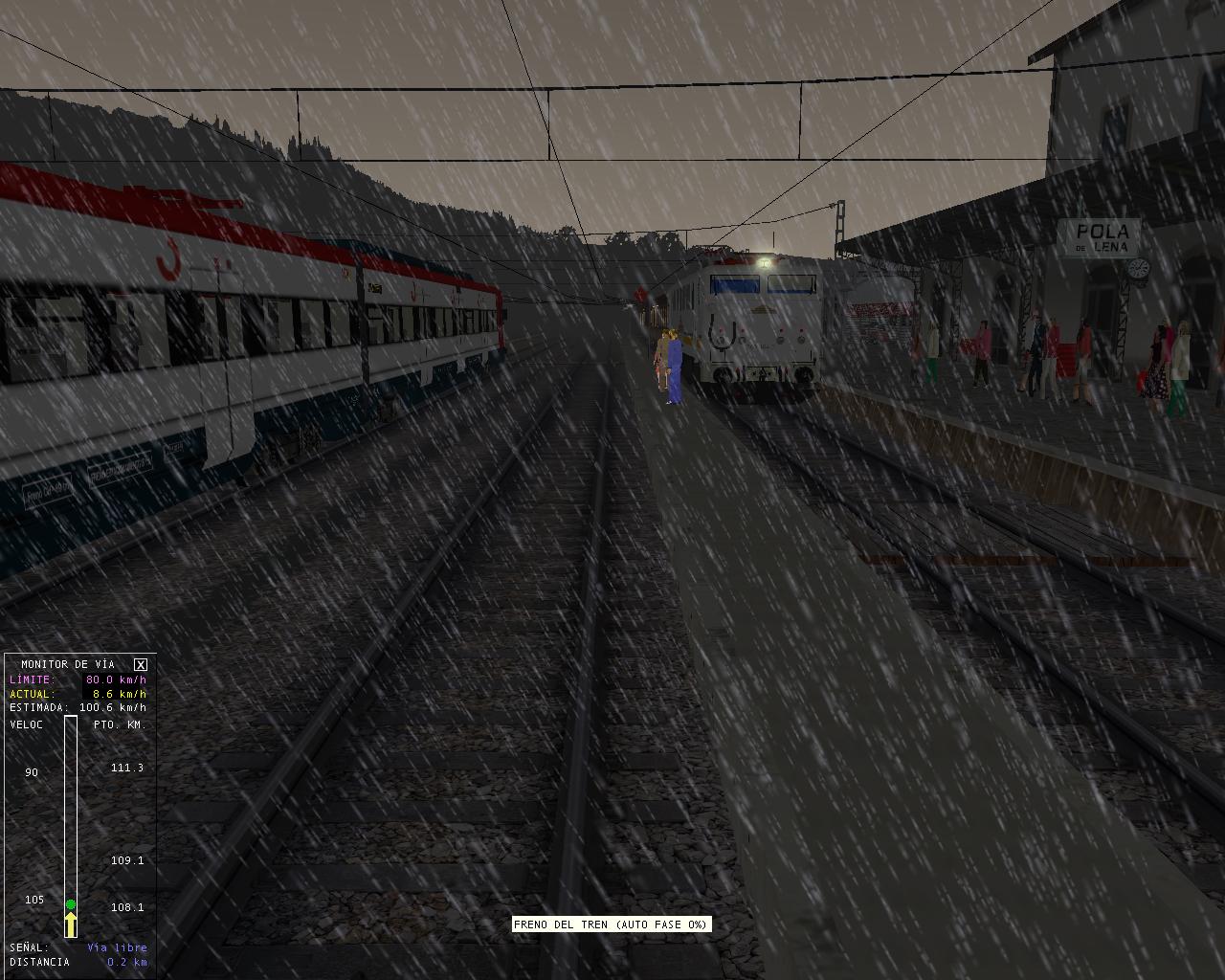 Dia lluvioso y muy temprano visivilidad bastante reducida,trafico bastante intenso.Llegamos a Pola de Lena con un tren talgo efectuaremos una parada para recoger documentacion que nos entrgara el factor de Pola,proseguimos viaje direccion Oviedo donde finalizara nuestro trayecto.Ojo con las señales sobre todo los semaforos,precaucion hay trafico delante nuestro,espero que os guste,horarios y circulacion son pura imaginacion.Gracias Trensim,saludos a todos.