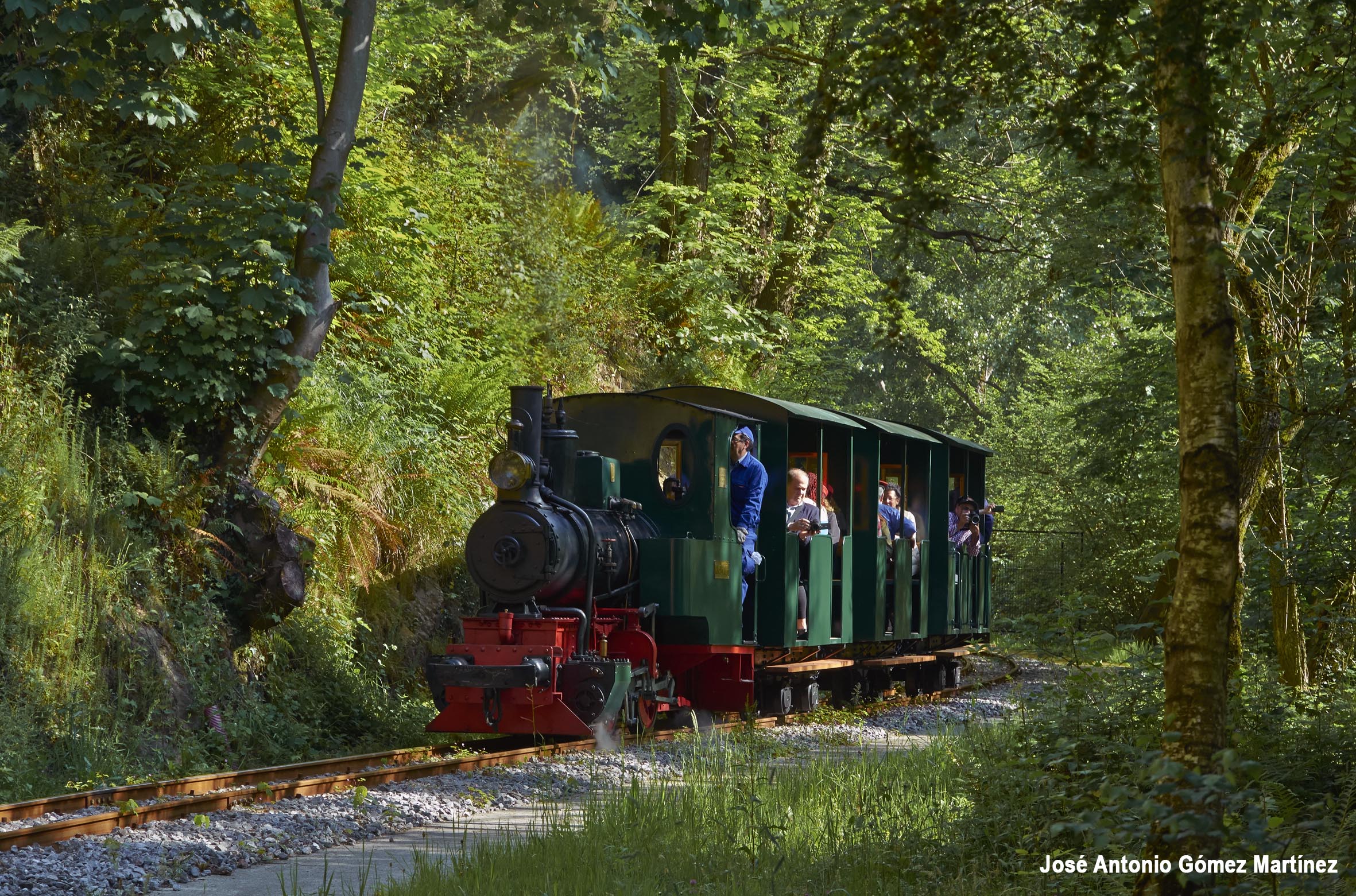 Tras el exito del inicio del servicio el pasado día 10, los sábados 24 y 31 de mayo continuarán circulando trenes de viajeros con tracción vapor en el espectacular paisaje de bosque del ferrocarril de ancho 600 mm del Ecomuseo Minero de Samuño (Asturias). La locomotora de vapor es la SHE D (Maffei de 1020) del Museo del Ferrocarril de Asturias.