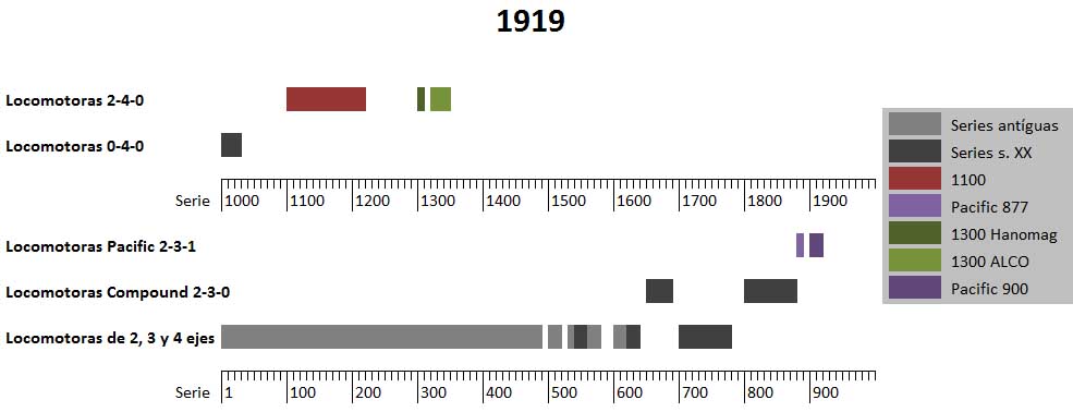Ya hemos visto el cambio en la tracción planteado a partir del 1901, y como una década después, y fruto del informe sobre mejoras de la tracción, se consolidan las 2-4-0 en simple expansión y vapor recalentado para mercancías, mientras que en pasajeros existe una apreciable duda entre los tipos 2-3-1 y 2-4-0 ambos en doble expansión. Todo parecía ir empezando a encajar hasta que estalla la primera guerra mundial...
