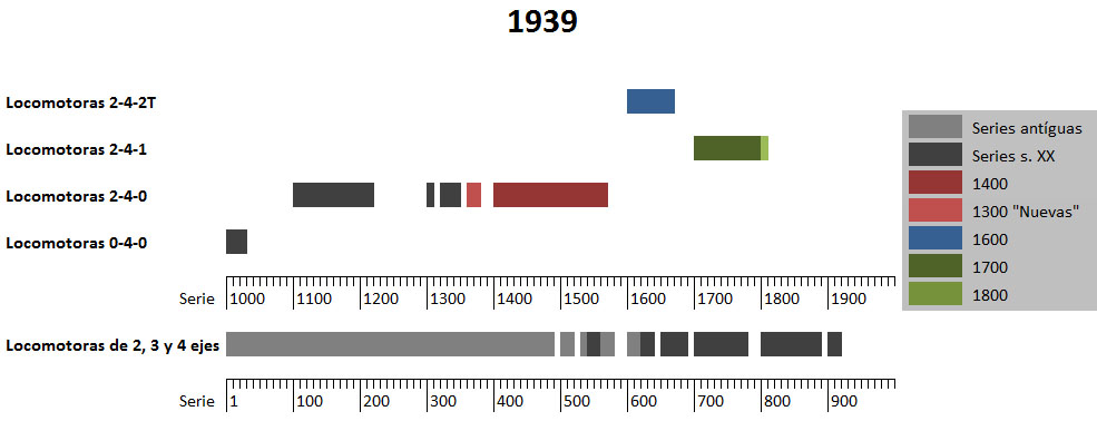 Disposición de las locomotoras de M.Z.A en 1939.