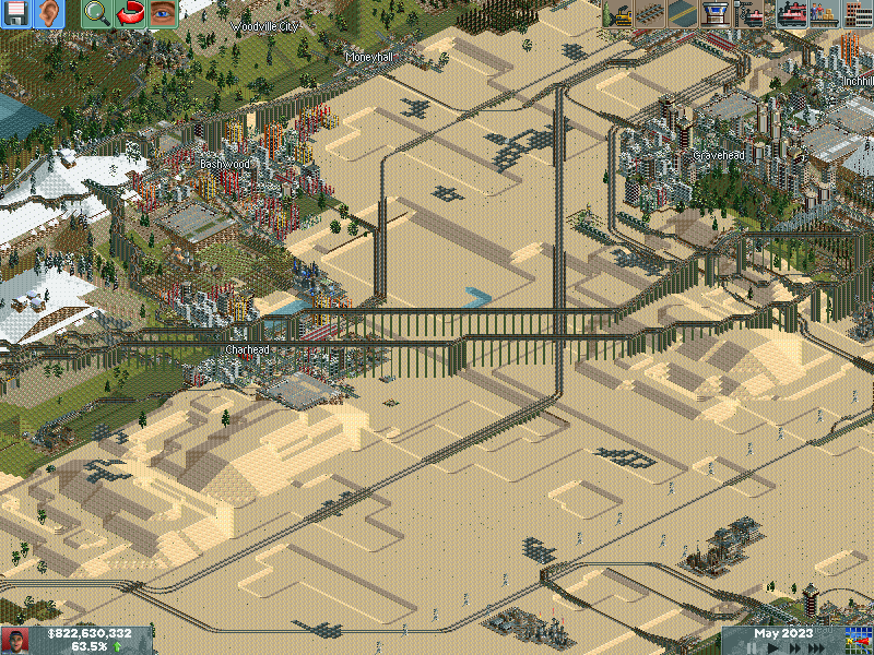 Aquí se ve un enorme viaducto construido por la inteligencia, que pasa por encima de un aeropuerto. En otra se ve una estación mía que tiene bastante actividad.