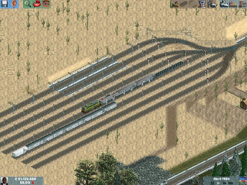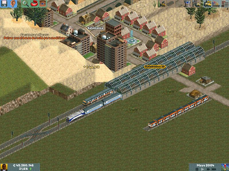 Os explico, me he creado un mapa totalmente llano, con muchas industrias. Para ver hasta donde podría llegar y a cuantos trenes podría hacer jaja. Lo empece en el año 1995 justo, con ciudades pequeñas apenas de 500 habitantes. Ahorra llevan algunas mas de 60.000 habitantes, y lógicamente las estoy encerrando para que no crezcan porque madre mía. Llevo unos 130 trenes, 14 aviones y unos 20 tranvías.