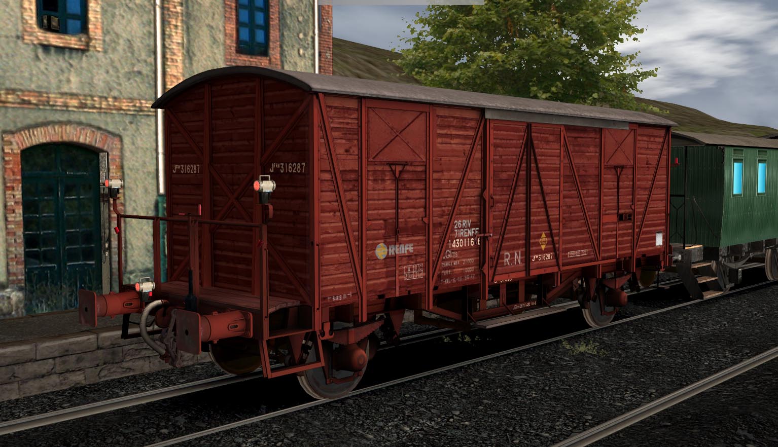 Modelos con malla y texturas detalladas, texturas de invierno, sonidos propios de traqueteo, pestaña y enganches, LODS, numeración interactiva real y linternas de cola (en el modelo con freno de mano). Versión exclusiva en ancho de vía ibérico de 1.668 mm. Las versiones para ancho de vía internacional de 1.435 mm se distribuyen separadamente.
