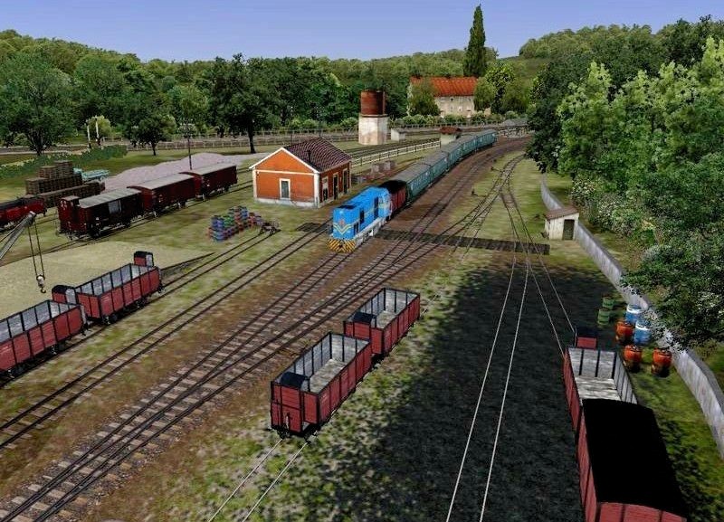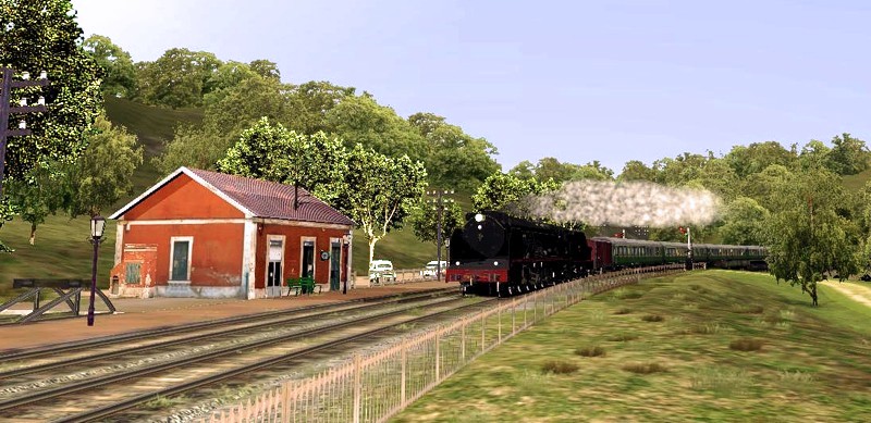 He colocado primero la vía ancha, hundida en el terreno.