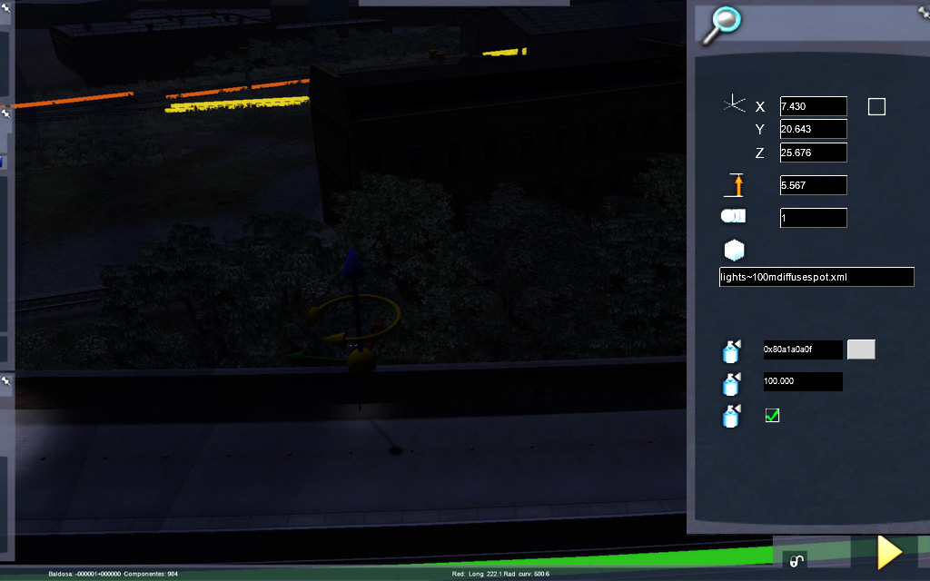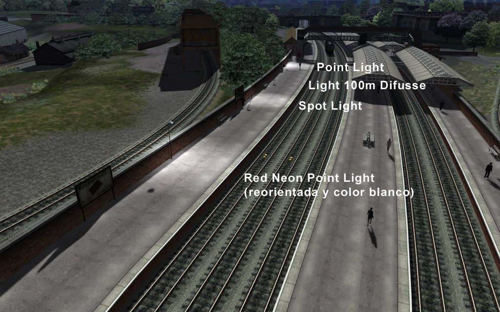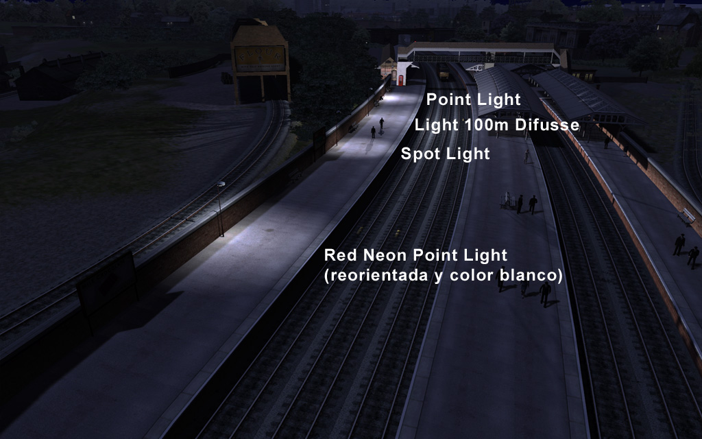 Ahora en vez de alumbrar las estaciones con el '100mDiffuseSpot' alumbramos con el '100mDiffuseSpotDay' y la luz permanecera alumbrando tanto de día como de noche...