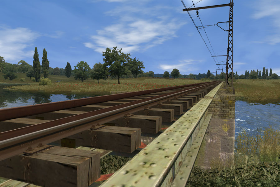 Para los puentes y otras situaciones especiales se ha preparado una vía con traviesas modeladas y sin balasto: