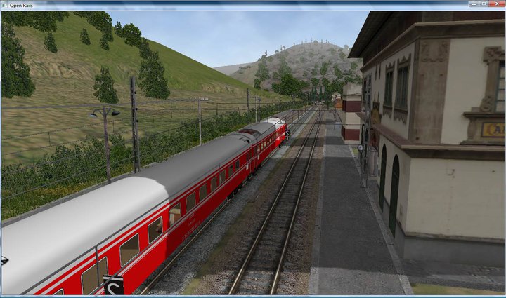 Visualmente ORTS cuida mejor los modelos que MSTS, aunque consume recursos a discreción. Ya digo, a mí me trabaja la CPU con dos nucleos a tope y otros dos al 75%. No penseis que si el MSTS os funciona bien el ORTS va ha comportarse igual, ni mucho menos. Necesita una buena máquina para funcionar a pleno rendimiento... Pero fijaros bien en que las catenarias de la ruta no me van, aunque las tengo seleccionadas en el menú de inicio. ORTS necesita aun mucho trabajo...