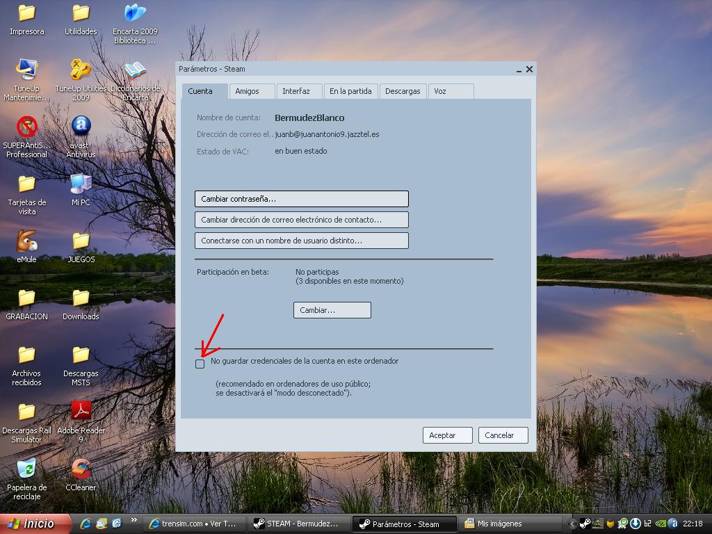 Vaya a Ajustes para garantizar que la opción "No guarde la información de la cuenta en este ordenador" no está seleccionada