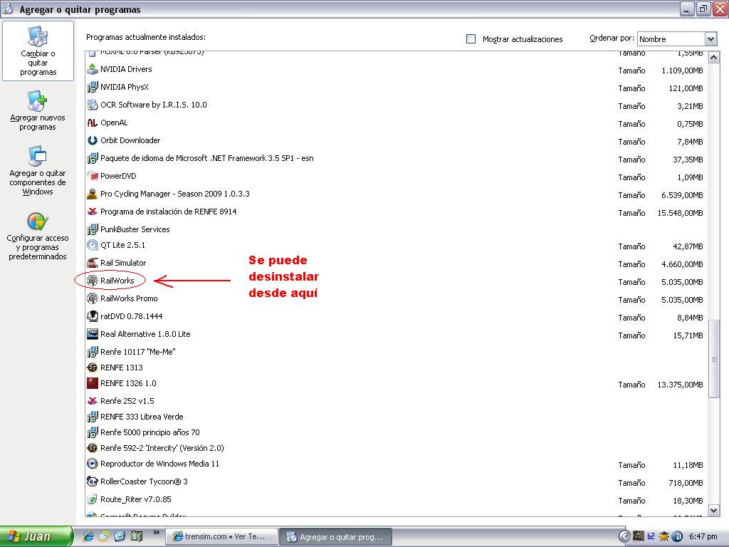 No creo que sea necesario pedirle a Steam que te borre Rail Works, puesto que aparece en "agregar o quitar programas":