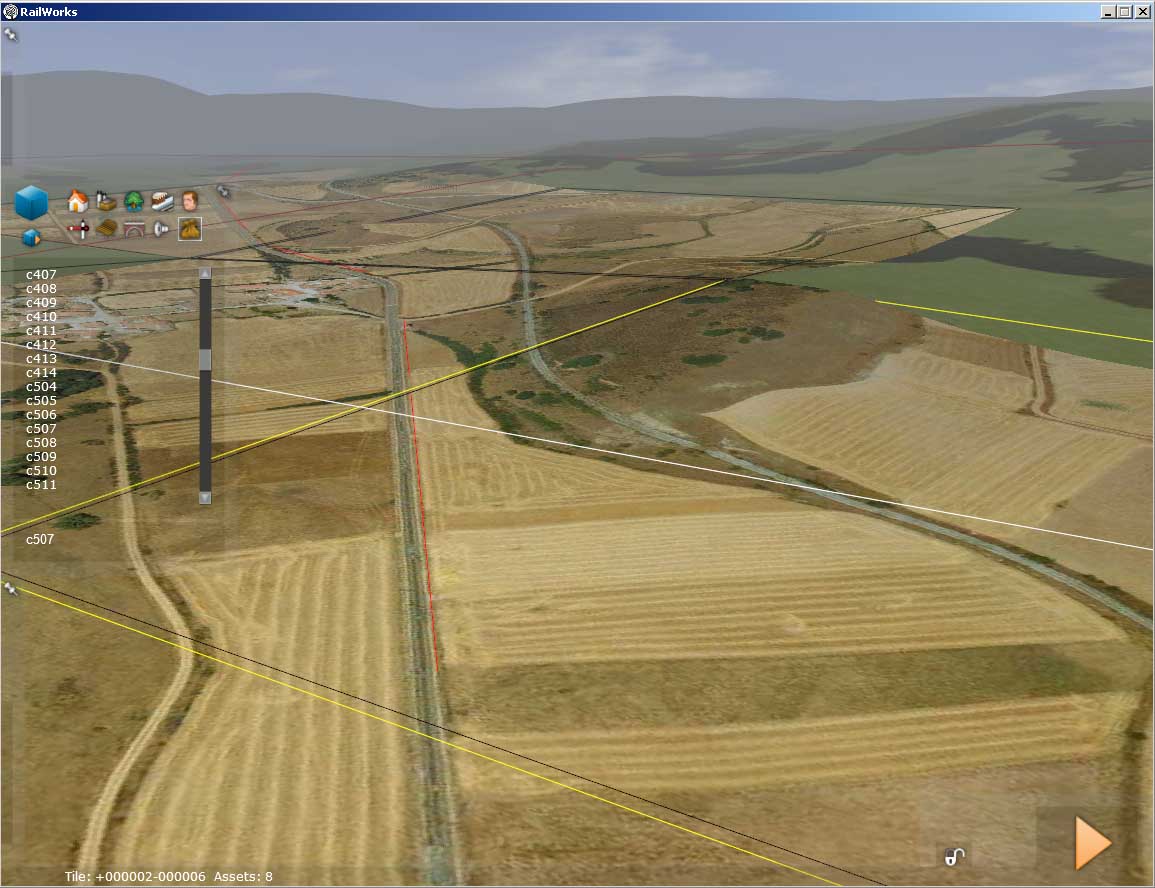 Como fondo son utilizables, pero los "artefactos" que aparecen a larga distancia y el pixelado en corta, los convierten en poco eficaces. He probado, para reducir el pixelado, a trabajar con decals de 4.096 pixeles y si bien mejora (cada pixel son 25 cms) aún se nota a pie de vía y además, obviamente, en una ruta larga, que podría llevar varios cientos, lastraría mucho el rendimiento.