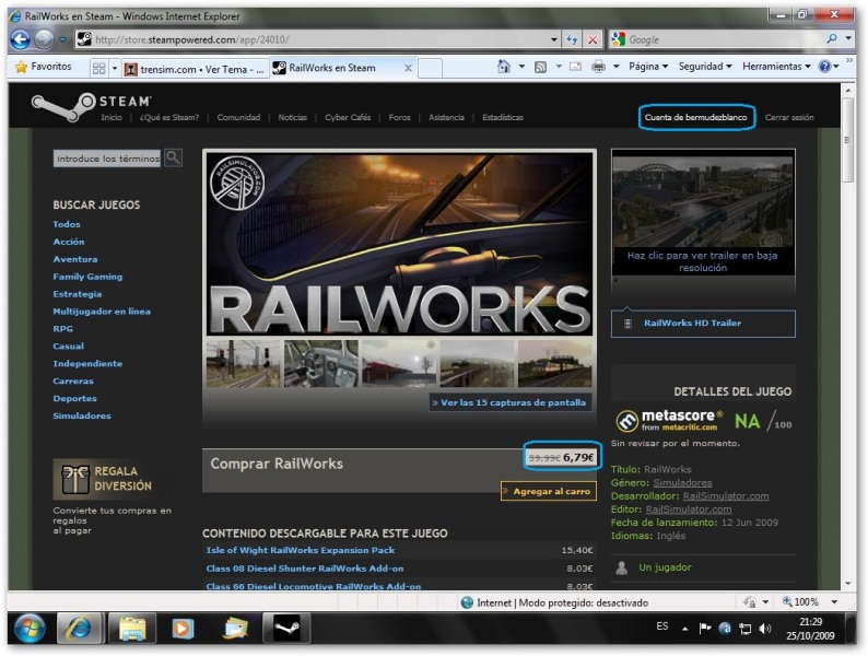 Básicamente es lo que ha dicho Pere, o sea , que el precio de 6,79€ es para los que ya lo tenemos comprado, por si lo queremos regalar a un amigo. Por eso, al loguearnos, Steam ya sabe que lo tenemos comprado y nos sale este precio. Sin embargo, el que aún no tenga comprado el simulador, aunque se loguee no le saldra el precio barato.