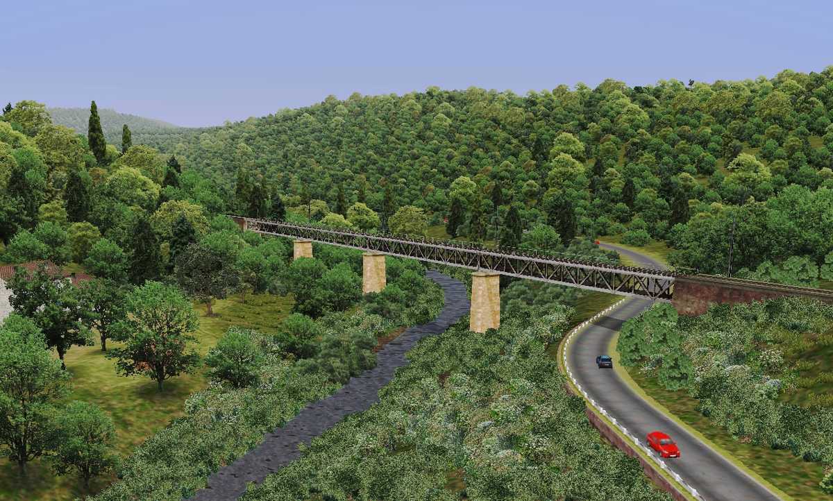 En este momento, la totalidad del trazado ferroviario de vía ancha ya está concluido, y ahora estoy acabando de poner los marcadores de vía. Muchos y muy necesarios, pues esta ruta esta concebida con una doble finalidad: