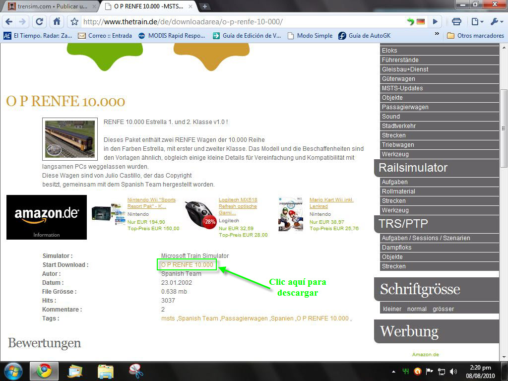 BARRALOSDEABAJO escribió:Hola a todos , veran , necesito los coches Renfe 10000 ya que el unico lugar donde los he encontrado es en the-train.de y no los puedo descargar ( ya estoy registrado)...