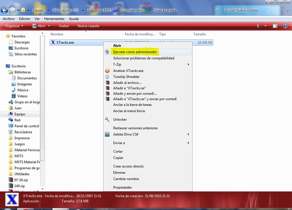 Clic derecho en Xtracks y ejecutar como administrador.