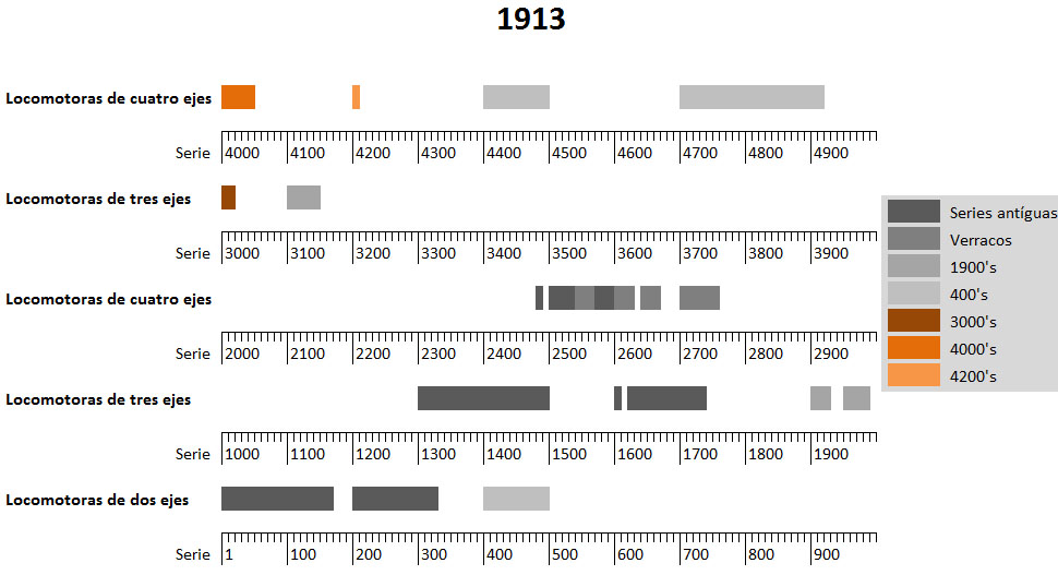 • Cada nuevo modelo de locomotora ocuparía, de inicio, toda una centena completa con independencia del total de integrantes de la serie, siempre que fuese inferior a 99.