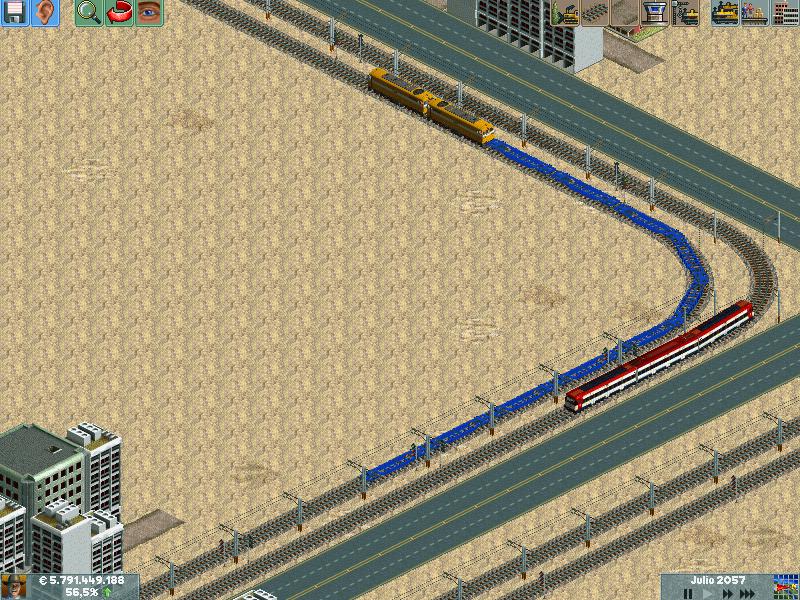 2ª- Un servidor llevando acero y químicos a la fábrica mientras otros "chupan del bote", real como la vida misma. :lol: Fijaros en la interesante composición que forman los competidores para robarme las mercancías. Una loco articulada de cuatro partes más un vagoncito, teniendo más de 1.000 Tn. en espera en su andén. Si es que de lo que se trata es de dar por c*l*. :twisted: A uno le queda la duda de si lo hacen por eso o porque los pobres no dan para más. :lol: