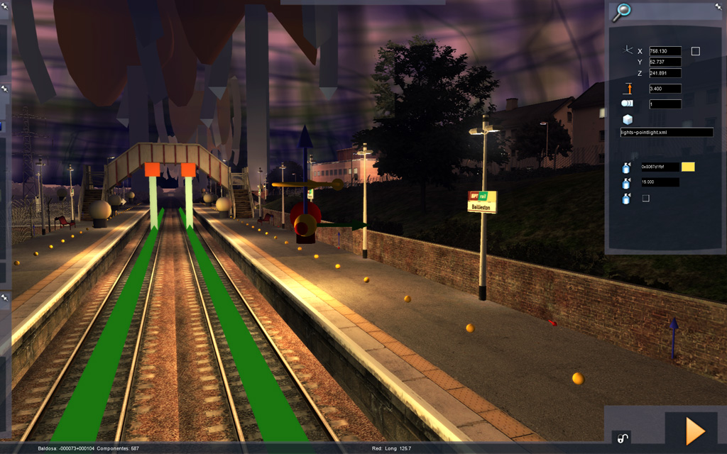 Parece ser que hay un problema relativo a la iluminación y no es sólo problema de esta ruta, sino del simulador en general. Mandé un mensaje al creador de esta ruta indicando que hay estaciones a oscuras (por ejemplo el RMT del escenario Night Time Post de la clase 325) pero, sin embargo, si entras en el editor de rutas los puntos de luz están ahí, sólo que apagados. Además, hay estaciones iluminadas durante el día, cosa que parece que no es intencionado. Esto también ocurre en otras rutas como la GWML. El señor Keith respondió indicando que hay un fallo en determinados puntos de luz que no cumplen el ciclo día/noche (parece que, por ejemplo, el 100m diffuse spot light no tiene esa línea en su programación), por lo que o están permanentemente encendidos o permanentemente apagados. Están esperando que la gente de RSC lo arregle.