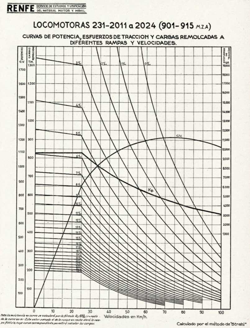 Respecto de las curvas, bien en realidad el simulador no reproduce (sería imposible) todas las variables de la realidad ni por tanto las curvas son equivalentes. El problema por explicarlo brevemente, es que en una locomotora real se obtiene el máximo esfuerzo de tracción con la admisión abierta a tope, y aquél se podría mantendría constante si no fuera preciso reducir la admisión porque con el aumento de velocidad (y por tanto de los ciclos de entrada y salida de vapor) llega un momento en que el vapor literalmente no es suficiente para trabajar en el cilindro. Por lo tanto, a partir de determinada velocidad se ha de reducir la admisión, lo que obviamente supone menos vapor trabajando y una reducción de dicho esfuerzo, que decrece hasta la velocidad límite. Aún asi se puede mover el tren porque en la práctica se ve compensado de alguna manera por la inercia. Después habría que considerar como variables, como afecta la mayor velocidad ( y por lo tanto el escape) a la capacidad de producción horaria de la caldera, como la velocidad afecta al rendimiento mecánico de la máquina, el tipo de distribución, la adherencia, las rampas y mil cosas.