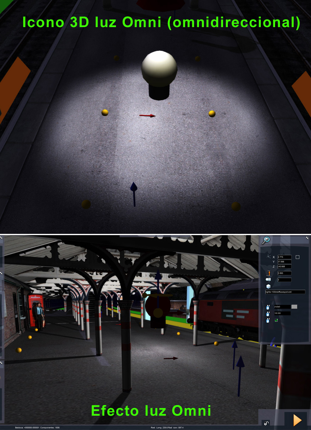 Parámetros de las luces Spot y Omni en RW3: