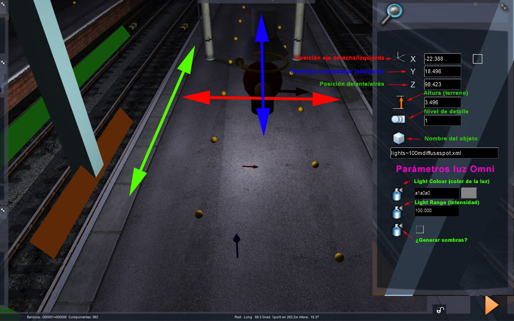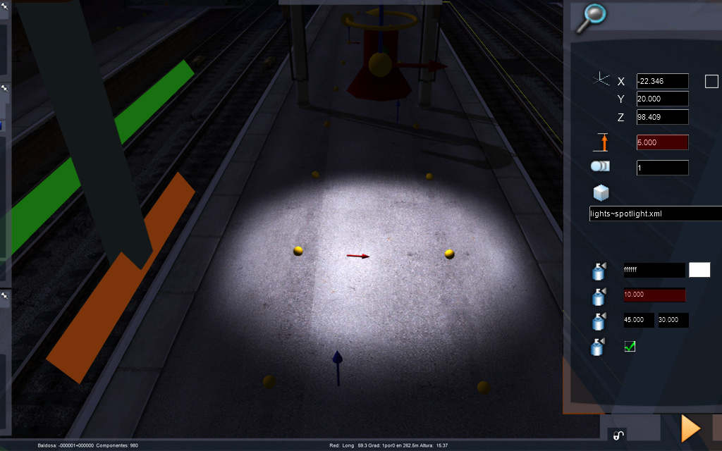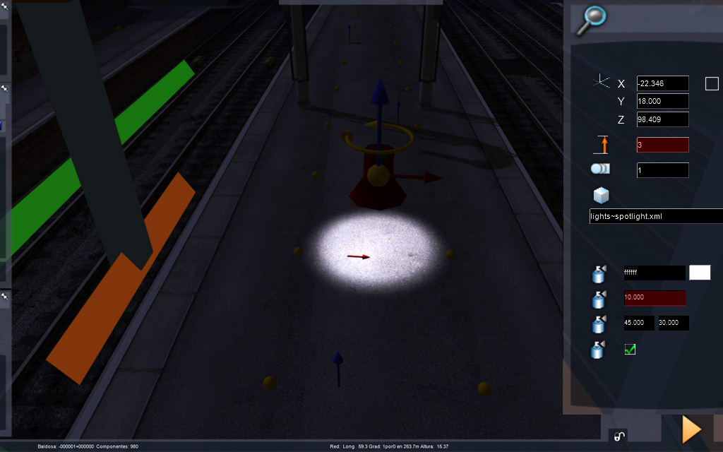 Estamos trabajando la iluminación de rutas, no de locomotoras, por lo que las luces spot las colocaremos normalmente de forma vertical: