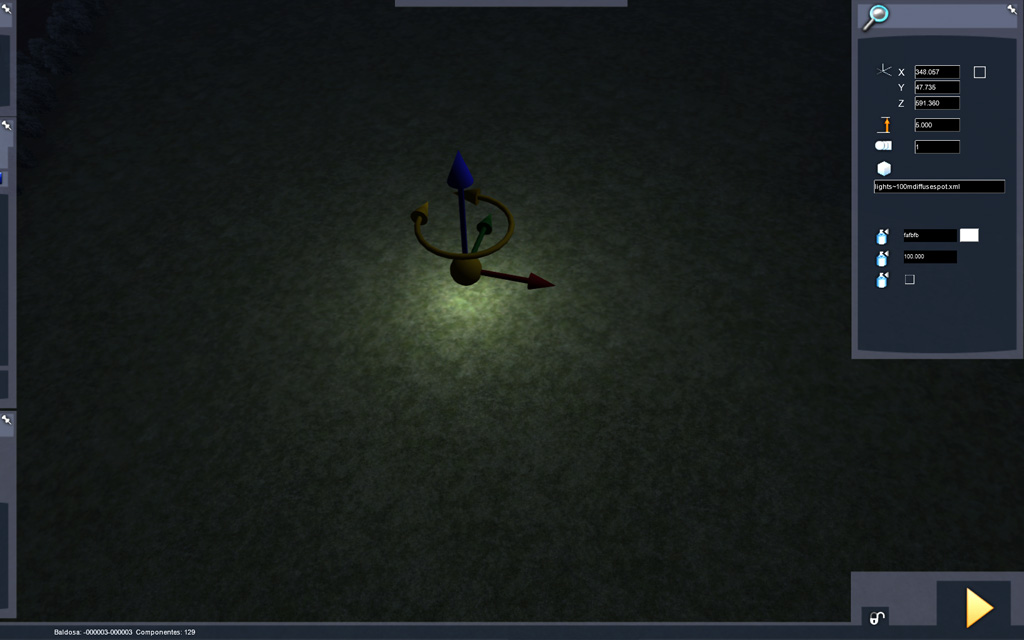 Por otra parte, señalar que el uso de los componentes 'spotlight' y 'pointlight' no reconocen el parámetro 'DayNightCycle' que le indica al componente de alumbrado si se activan siempre o solo de noche, ya que carecen de él. Usar estos dos componentes para cualquier tipo de alumbrado ofrece resultados dispares.