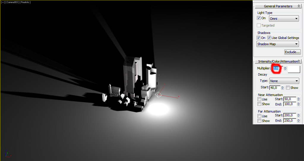 Como las luces "Point" u "Omni", podemos ajustar el multiplicador/intensidad: