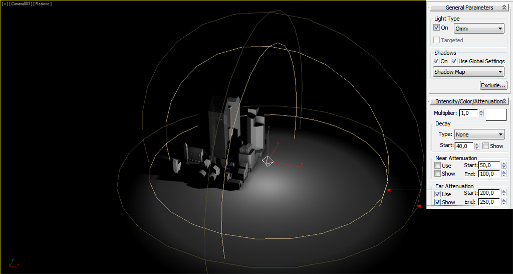 Influencia del parámetro "Light Range"
