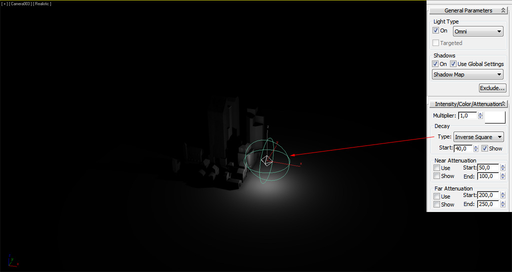 Como las luces "Point" u "Omni", podemos ajustar el multiplicador/intensidad: