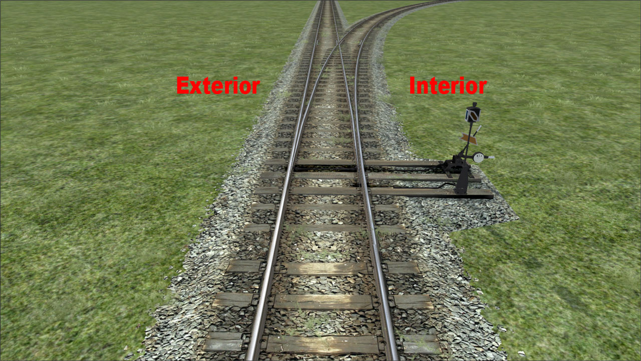 A modo de resumen, las reglas de vía con la terminación Interior o Exterior las usaremos en el momento de trazar una aguja dependiendo de si deseamos que el aparato de accionamiento de la aguja quede situado en el costado interior o exterior de la aguja, sin importar si el desvío es a derechas o izquierdas.