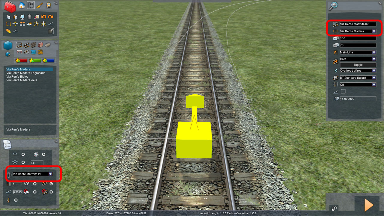 Para que lo anterior no ocurra debemos usar en este caso la regla de vía “Vía Renfe Marmita Ext”, dado que deseamos la marmita en el lado Exterior de la aguja.